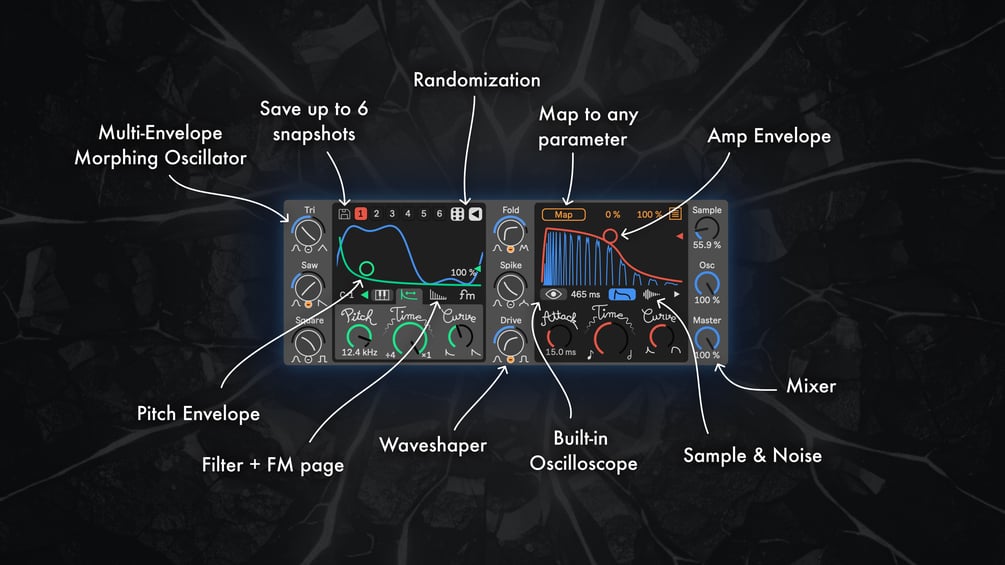 Rupture is a next-generation kick drum synthesizer for Ableton Live (Max for Live). At its core lies a Multi-Envelope Morphable Dynamic Oscillator, where the waveform is alive and constantly evolving throughout the kick. This unique design lets you sculpt transients, body, and decay in one fluid motion. Making every kick rich, organic, and full of character.